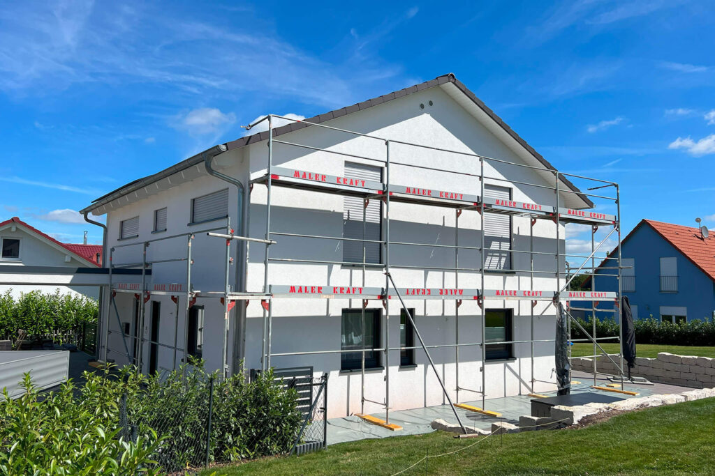 Ob beim Neubau oder bei Renovierungsarbeiten an deinem Eigenheim oder deinem Gewerbebau brauchst du für die Fassadenarbeiten in der Regel ein Gerüst. Es sorgt für die notwendige Sicherheit der Handwerker und ermöglicht das Arbeiten in großen Höhen. Wir stellen auch Gerüste für Arbeiten auf dem Dach, wie beispielsweise Dachfanggerüste für die Montage einer Photovoltaik-Anlage oder für Dachdeckerarbeiten.